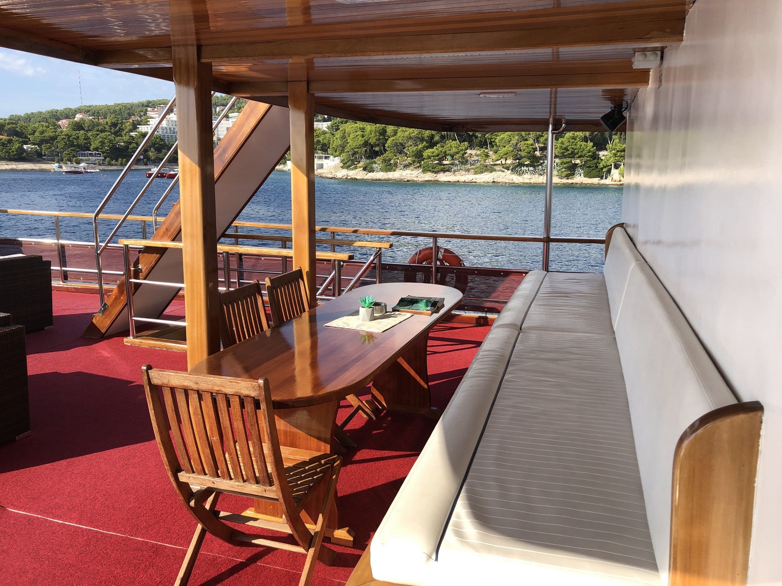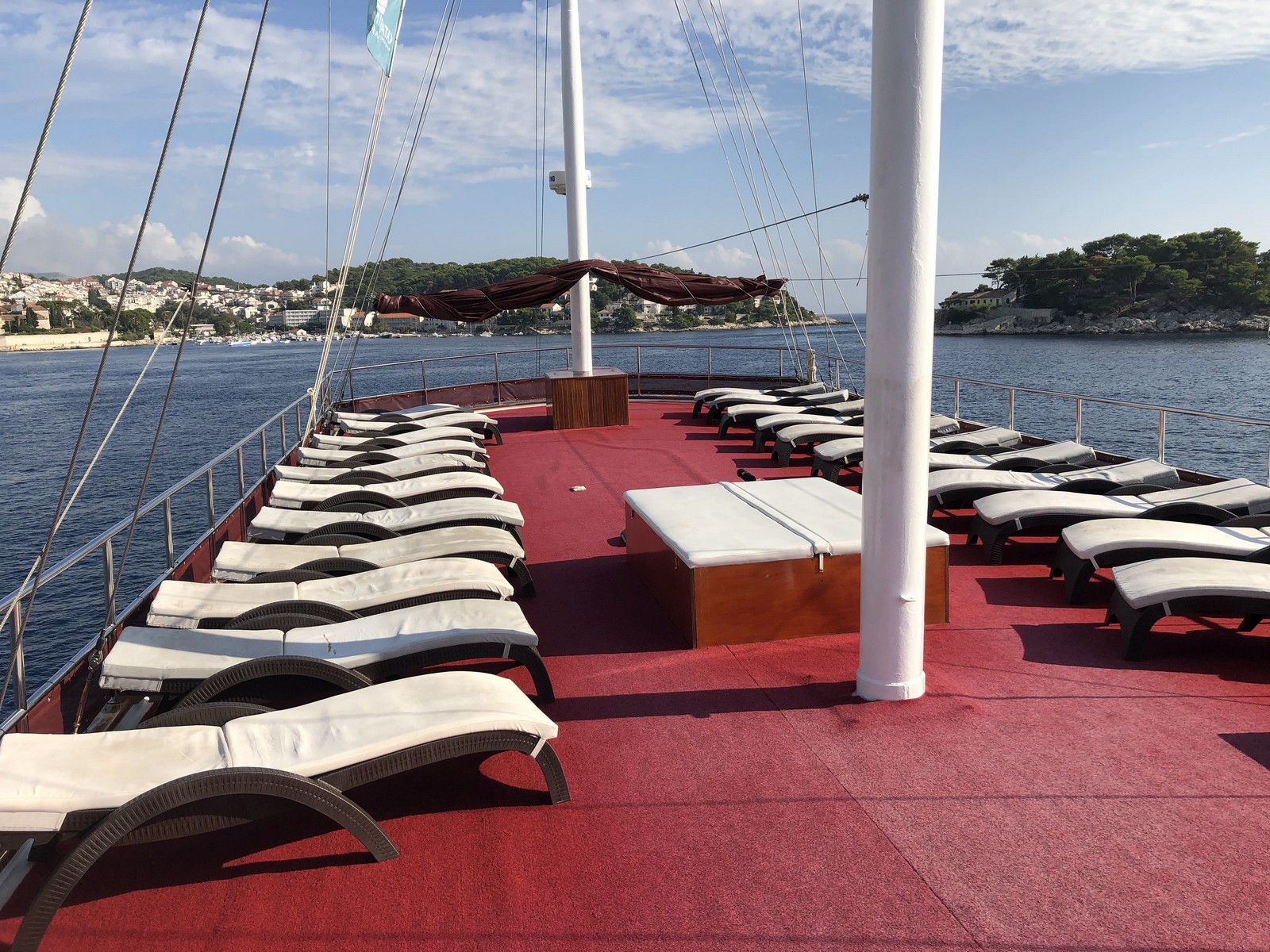 Veľa hostí si užíva jedinečný zážitok spánku na palube lode pod hviezdami. Naše lode na to poskytujú priestor na sundecku. Ak chcete túto možnosť vyskúšať doporučujeme Vám priniesť si spací vak, pretože posteľnú bielizeň a matrace, ktoré máte v kajute nie je dovolené vynášať.