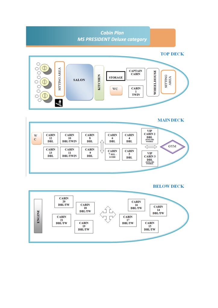 Cykloloď PRESIDENT je priestranná a luxusná loď triedy Deluxe. Dĺžka lode 47 m, šírka 9 m, kapacita 40 osôb. Na cyklolodi sa nachádza salón, dobre zásobený bar, kúpacia plošina a priestranná, slnečná terasa. Cykloloď je e-bike friendly.